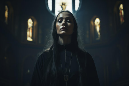 Compassionate Priest cute woman church. Holy belief. Generate Ai