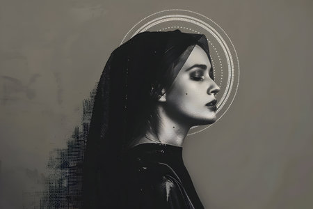 digital painting Illustration portrait of the holy virgin Mary with a veil, aureole and a christian cross