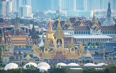 Bangkok, Thailand - Oct 18, 2016 Unidentified people are waiting to see the Royal Family that come to pray for The King IV at Sanam Luang in front of Wat Phra Kaew and the Grand Palace