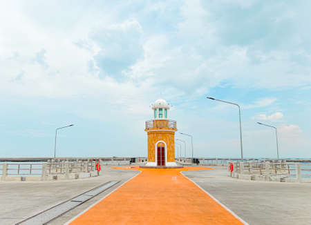 Ang Silla,Thailand - May 7,2022 : Panorama of the morning atmosphere,Lighthouse of Ang Sila Market, the center of Chonburi's seafood for tourists.Chonburi Province Thailand
