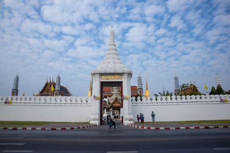 Grand Palace outside the wall in cloudy weather. This is the one of famous destinations in Thailand. Inside, there is a Emerald Buddha temple and many beautiful palaces