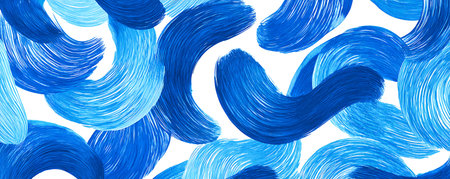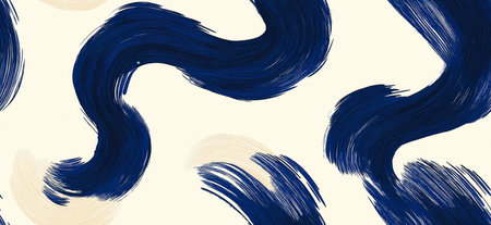 Dynamic navy brush strokes create a captivating abstract pattern on a white background. Seamless pattern with hand painted blue waves