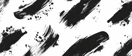Black ink brush strokes create dynamic textures on a white background
