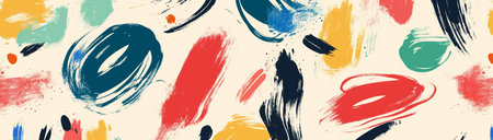 Bright and lively abstract design showcases bold brush strokes and colorful shapes on a light background