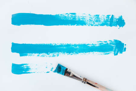 green blue stroke of the paint brush on white paper
