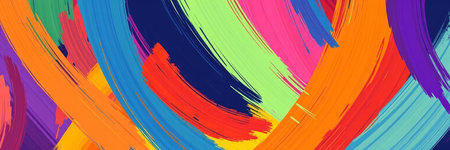 Dynamic brush strokes in vibrant colors create an energetic abstract background design