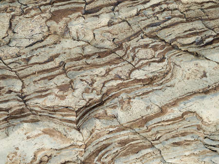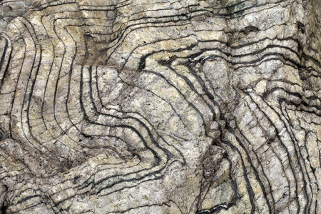 Close-up of layered rock surface with wavy textures and natural marbled patterns