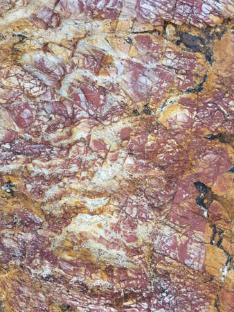 Stone textures. Dark orange banner. Colorful mountain texture. Close-up. Voluminous. Abstract rock background. Macro detail of the rock.