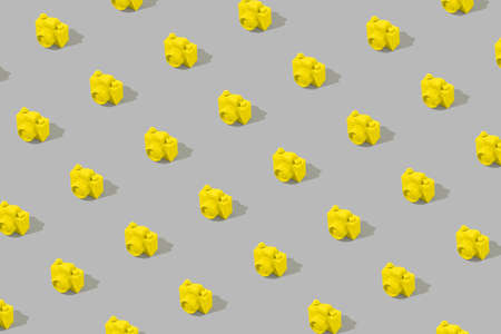 Pattern design. Rubber yellow inflatable ducks isolated on white