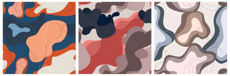 Three abstract contemporary seamless patterns. Set of colorful stone texture. Marbleized effect with smooth lines