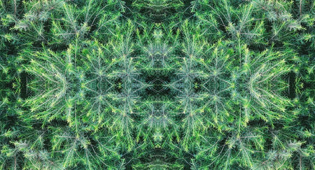Abstract Symmetrical Pattern of Lush Green Pine background. Wallpaper for Christmas Design