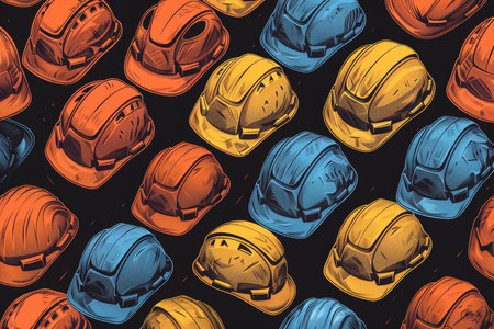 This image showcases an organized array of colorful safety helmets, highlighting various hues that emphasize safety and style in construction.