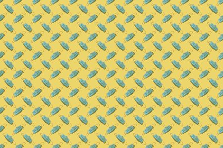 Yellow-blue pattern: a lot of medical masks on a yellow background.