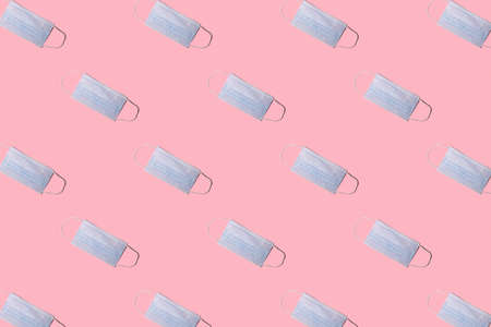 Medical face protective masks on pink background. Seamless pattern. Mask protective against coronavirus, covid-19, virus, pollution. Epidemic, medical concept