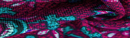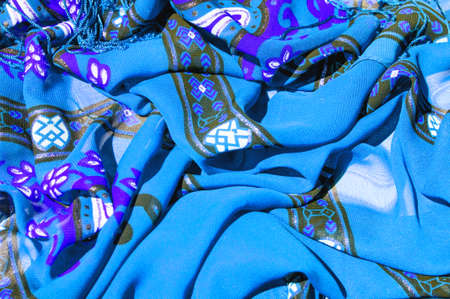 Background texture Blue silk fabric with a pattern. this light silk braided can be turned into your design. With the help of several segments from this print, you can get precious samples of your work