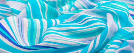 silk fabric, blue background with striped pattern of white and purple lines, mexican theme, mexican poncho costumes. Texture pattern, collection,