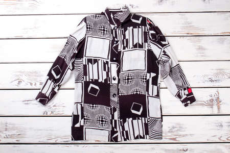 Geometric shirt flat lay. Black and white modern stylish fancy shirt, top view.