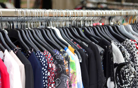 Detail of women's clothing in a market in the city, fashion
