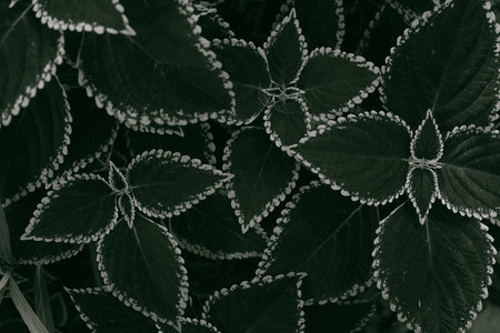 beautiful natural dark green and burgundy background with leaves of an ornamental plant close-up
