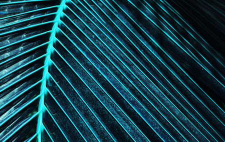 Beautiful dark background of green leaves in trendy neon light.