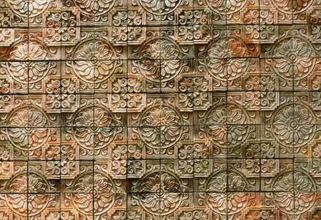 Detail of traditional tiles from facades of old houses in Lisbon, Portugal