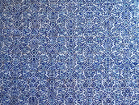 blue and white traditional uzbek tiles mosaic from Khan (king) Palace in Khiva, Uzbekistan