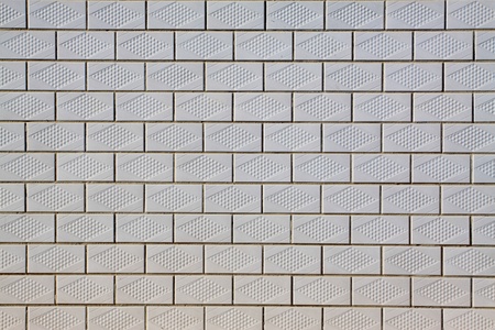 Colorful abstract tiles in blue, orange and yellow color scheme on the building wall with vibrant geometric patterns