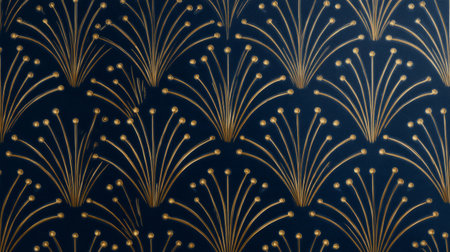 gold linear motifs on deep navy background in art deco style. Generative AI