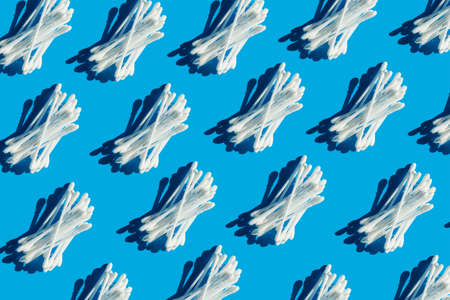 Multi-colored plastic bottle caps on a blue background. The problem of environmental pollution. Top view, Pattern. Recycling plastic.