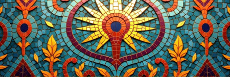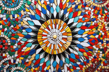 Colorful mosaic forming an abstract sun with its concentric circles, creating a beautiful decorative background