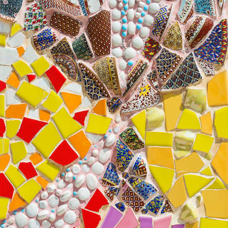Colorful ceramic mosaic wall texture background. Close up of colorful ceramic mosaic wall.