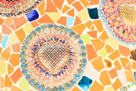 Colorful mosaic on the wall in the Park Guell, Barcelona
