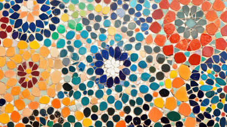 Vibrant and colorful mosaic pattern showcasing an artistic arrangement of tiles. Ideal for design projects, backgrounds, and decorative themes.