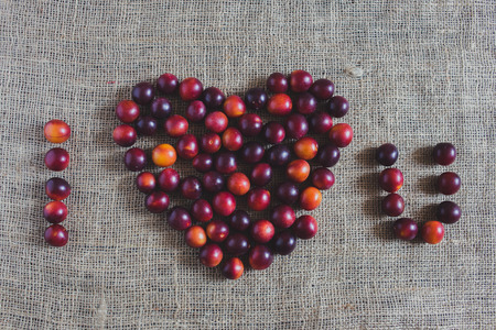 I love you! Heart of plums, plums on the table, gifts of nature, bowl with plums, sweet plums, plums from the garden, a bowl of clay