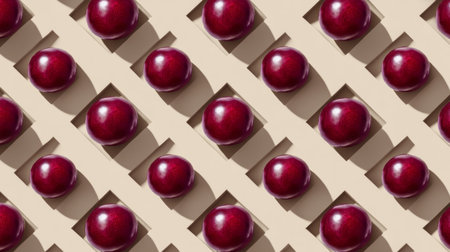 A visually stunning arrangement of glossy red fruit against a neutral backdrop showcases beautiful patterns and textures, perfect for culinary and design inspirations.