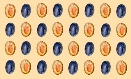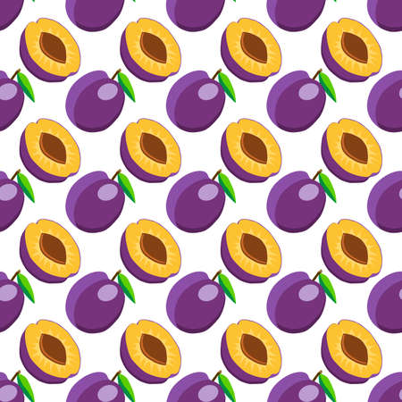Illustration on theme big colored seamless purple plum, bright fruit pattern for seal. Fruit pattern consisting of beautiful seamless repeat plum. Simple colorful pattern fruit from seamless plum.