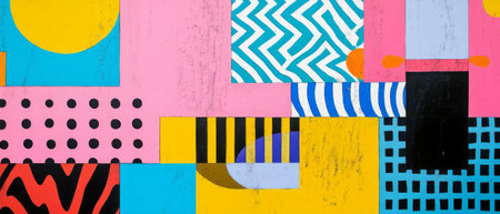 Explore playful postmodern patterns and geometric shapes in vibrant colors