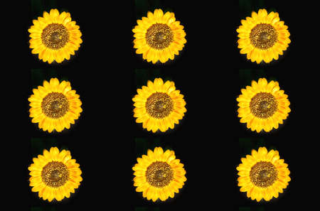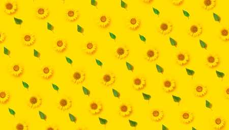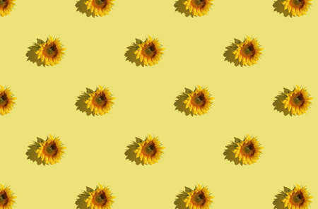 Repetitive pattern made of sunflower on a bright yellow background.