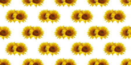 Close-up of two sunflowers creating a seamless pattern, isolated on a white background, ideal for nature-themed designs