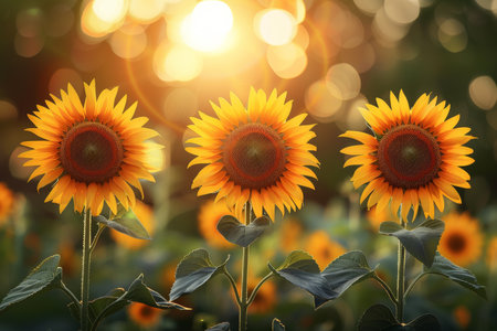 Bright and cheerful background featuring sunflowers glowing in warm sunlight for a joyful look