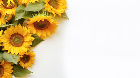 Sunflowers on a white background with copy space for text. AI Generated