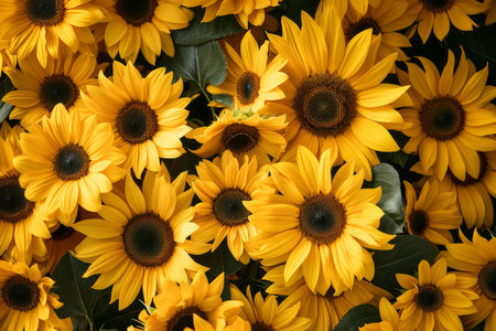 Sunflowers background. Sunflowers top view. Sunflower natural background.