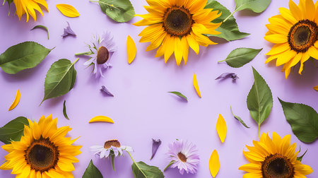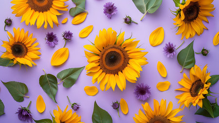 Sunflowers with petals on purple background