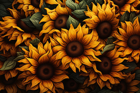Hyperreal view of a vibrant field of sunflowers