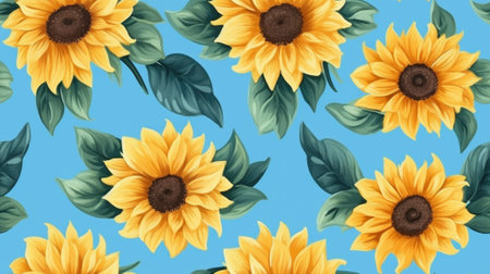 Seamless pattern with sunflowers and leaves.