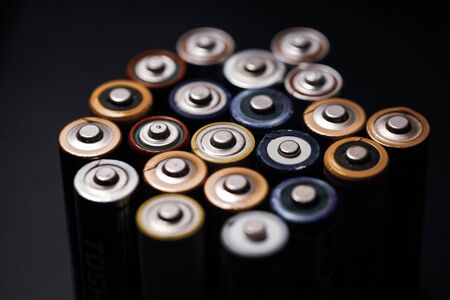 Group of alkaline batteries as background