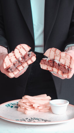 Mixing textures and colors in a minimalistic geometric collage featuring burger imagery