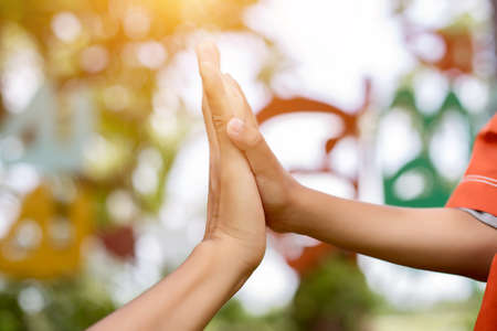 True friendship concept,Asian couples lover holding hands to encourage in times of disappointment or life problems together,Close up