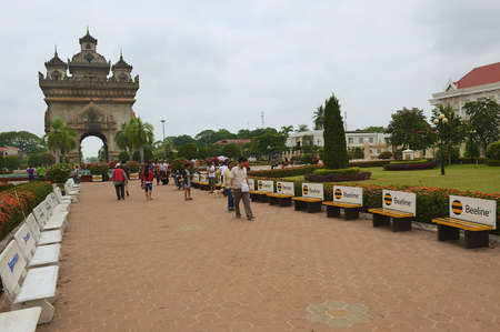 Vientiane, Laos, April 22, 2012 - People visit Patuxay park and Victory monument in Vientiane, Laos.