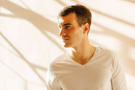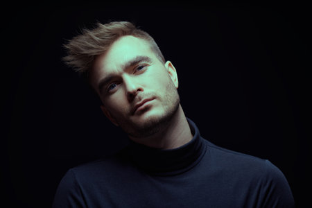 Portrait of a handsome young man in a dark room. Men's fashion.